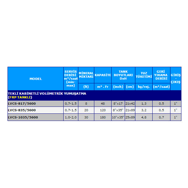 Ham su sertliğine bağlı olarak mineral tankının büyüklüğü